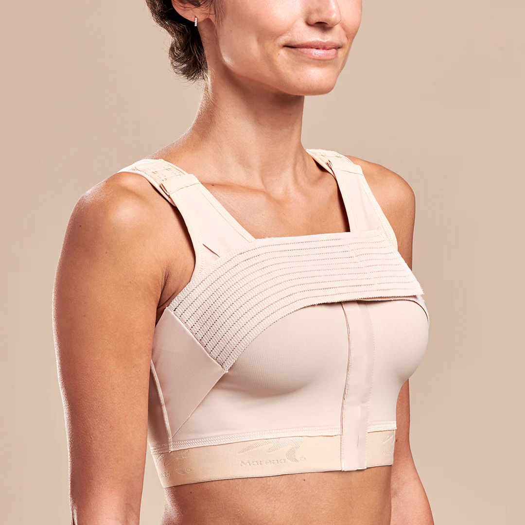 Noua noastră bustieră FlexFit™ Stabilizer dispune de o bandă elastică incorporată pentru stabilizarea mișcării ascendente a implanturilor după augmentarea mamară. Construită cu cupe FlexFit™ și închideri reglabile, această bustieră se adaptează fluctuațiilor de mărime cauzate de umflături și are bretele reglabile, căptușite, cu închidere tip cârlig și ochi. Țesătura noastră brevetată oferă o elasticitate superioară pentru a preveni strângerea, asigură evaporarea umezelii și răcire, și protecție activă antimicrobiană cu argint.